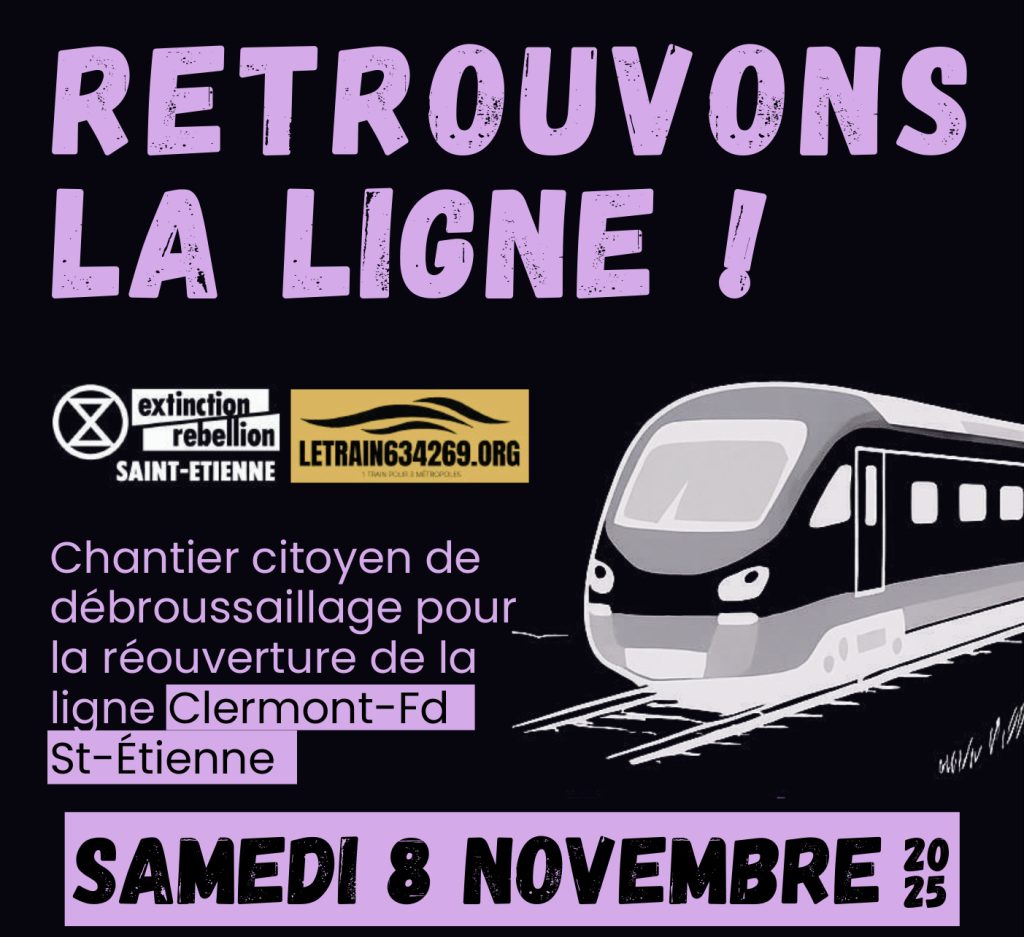 Letrain634269 suggère une grande opération de débroussaillage de la ligne Thiers Boën ce samedi 8 novembre 2025 à partir de 9h30. Le rendez-vous est à Noirétable. Il faut arriver avec ses outils et son gilet fluo. Le programme de la journée en détail :